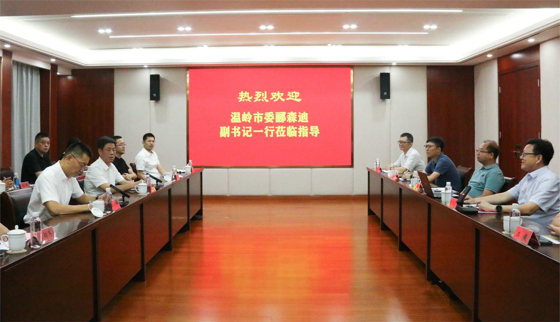 7月30日,温岭市委副书记、政法委书记郦森迪率温岭市教育考察团一行13人来十三水官网 访问交流,江苏省通信管理局一级巡视员陈夏初陪同考察。十三水官网 副院长赵凯雷等接待了考察团一行。
