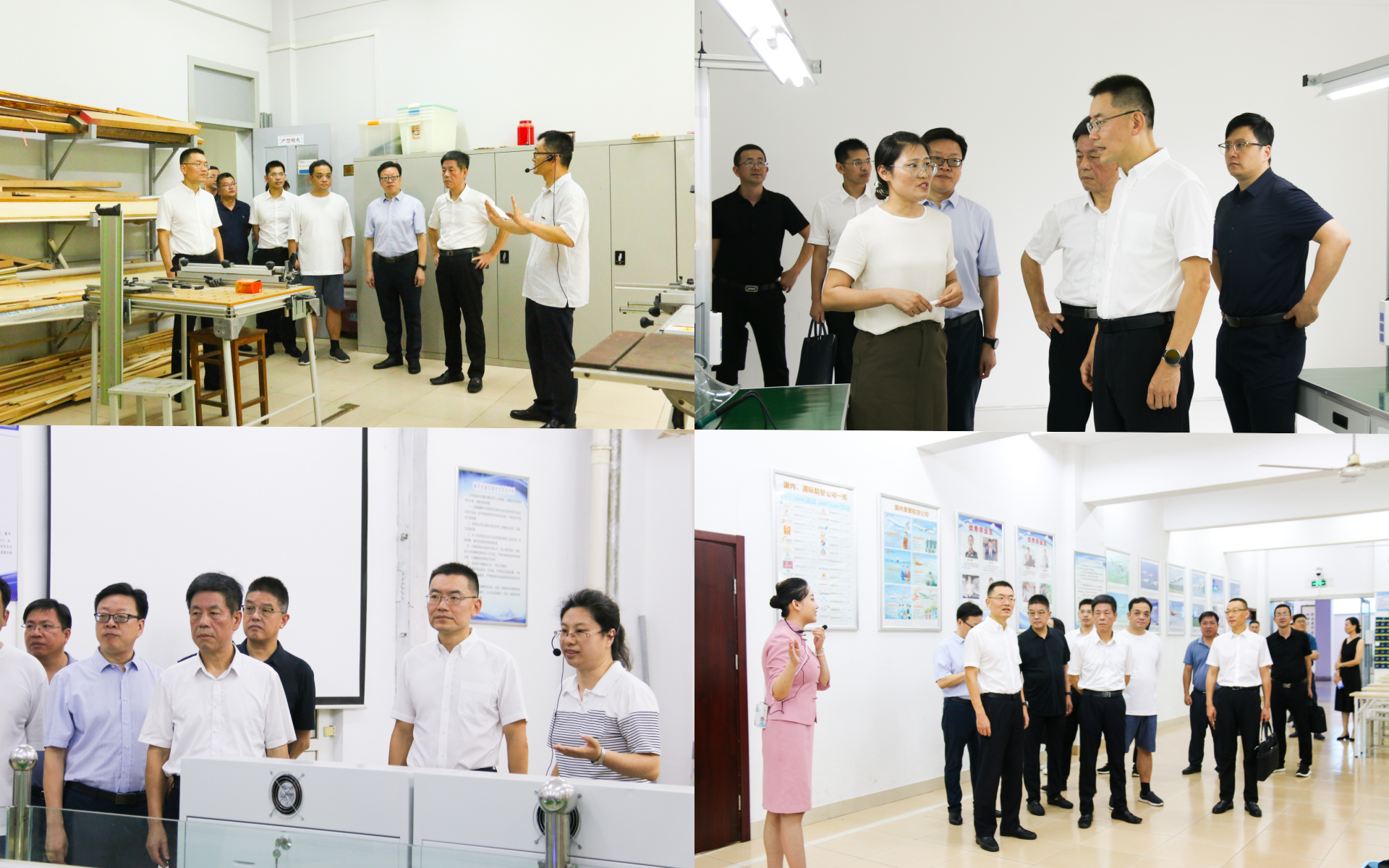 考察团实地参观了十三水官网 建筑与装饰实训工场、产业工人职业技能训练中心、城市轨道交通实训中心、民航实训中心等实训场所。