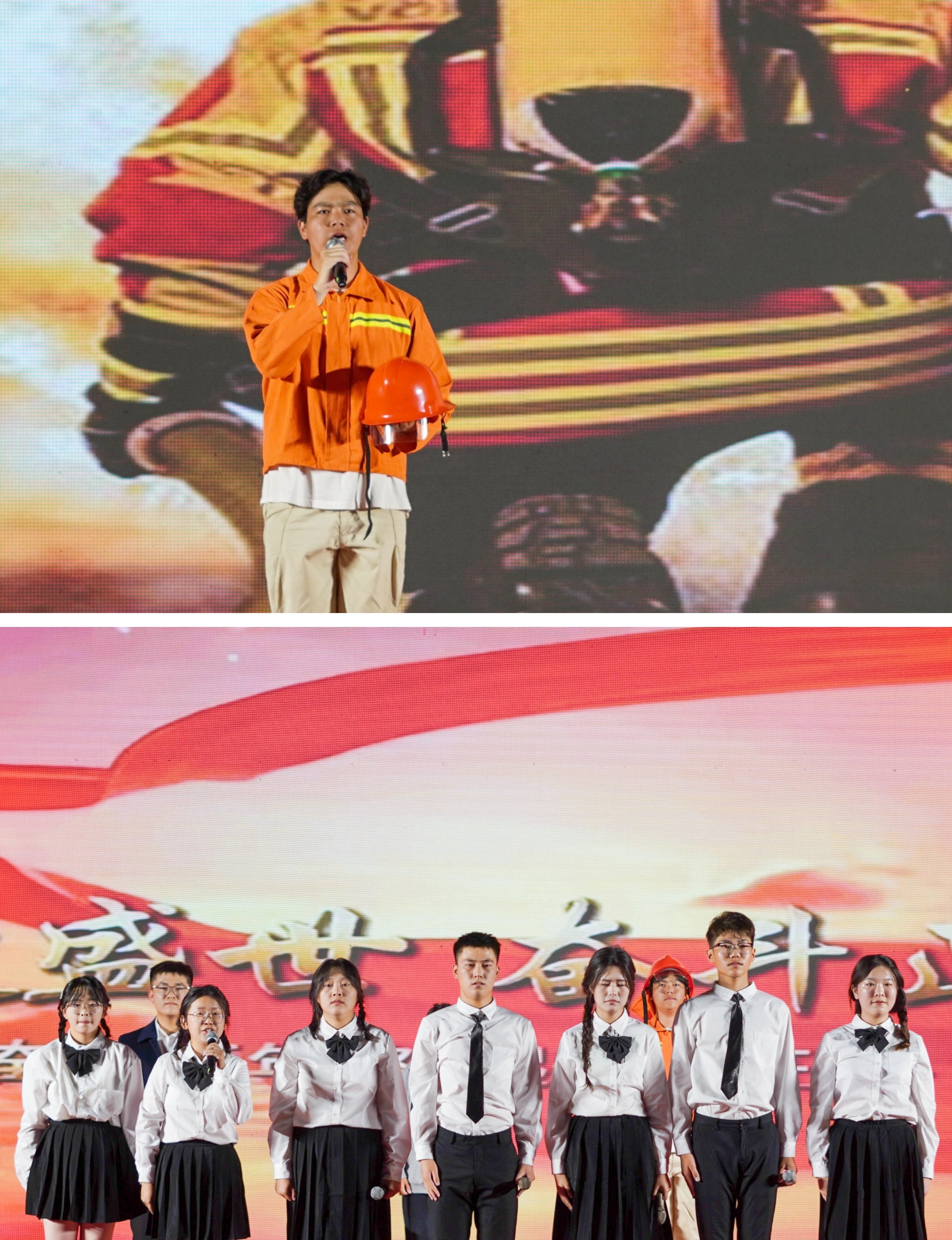 晚会第二篇章充满了青春梦想的活力和逐梦奋进的斗志。戏曲表演《牡丹亭》百转千回,声声天籁,展示了中华优秀传统文化,让观众们感受到昆曲艺术的魅力;歌曲《快乐女孩》,引领大家跟随音乐的律动,忘却忧愁,活力四射跳出属于自己的快乐旋律;吉他弹唱《晴天》,向大家诠释了什么是一样的青春,不一样的精彩,鼓励大家保持最好的状态,在青春的赛道上奋力奔跑;情景剧《逃出大英博物馆》,用浪漫的幕后故事 ,独特的立意、精细的设计,一句“请带我回家”的承诺让“文物奔赴”,提醒广大青年勿忘国耻,吾辈当自强;汉服社带来的舞蹈《花月宴》,让大家体验到身临其境般的穿梭时空,绽放华美之姿,热情似火的拉丁《恰恰》,让欢快地气息弥漫全场。