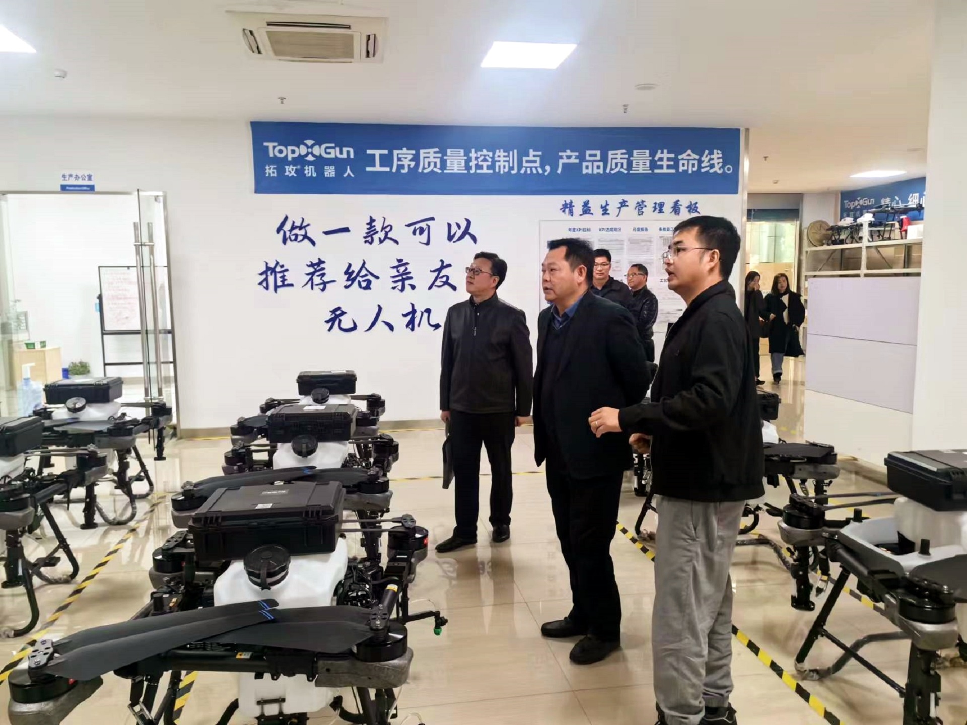 孙永荣一行观看了拓攻丰鹏400农用无人飞机的喷洒演示,参观了公司智能产品展厅、仿真实训中心及无人机生产组装车间等地。在随后的座谈会上,公司负责人尹亮亮等从公司核心能力、创始团队、监管平台、市场情况、教育培训应用服务相关业务等方面进行了介绍,详细阐述了农业应用场景案例和物流场景。表达了产教融合的意愿,并积极参与到十三水官网 无人机等专业建设、实训基地建设等项目建设过程中,合作培养无人机应用领域高素质技能人才,共同助力区域经济及产业发展。