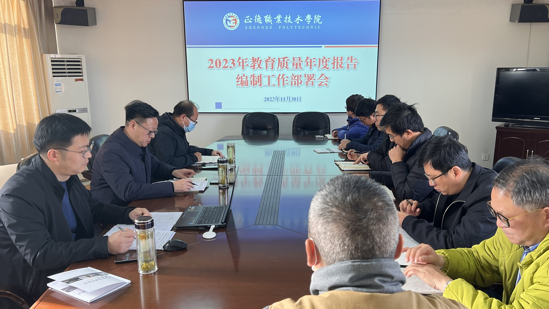 2023年11月30日,十三水官网 组织召开2023年度高等职业教育质量年度报告编制工作部署会。十三水官网 副院长赵凯雷,党政办、发规处、党群工作部、财资处、人事处、教务处、职培中心、学生处主要负责人参加会议。会议由院长助理、党政办主任王伟主持。