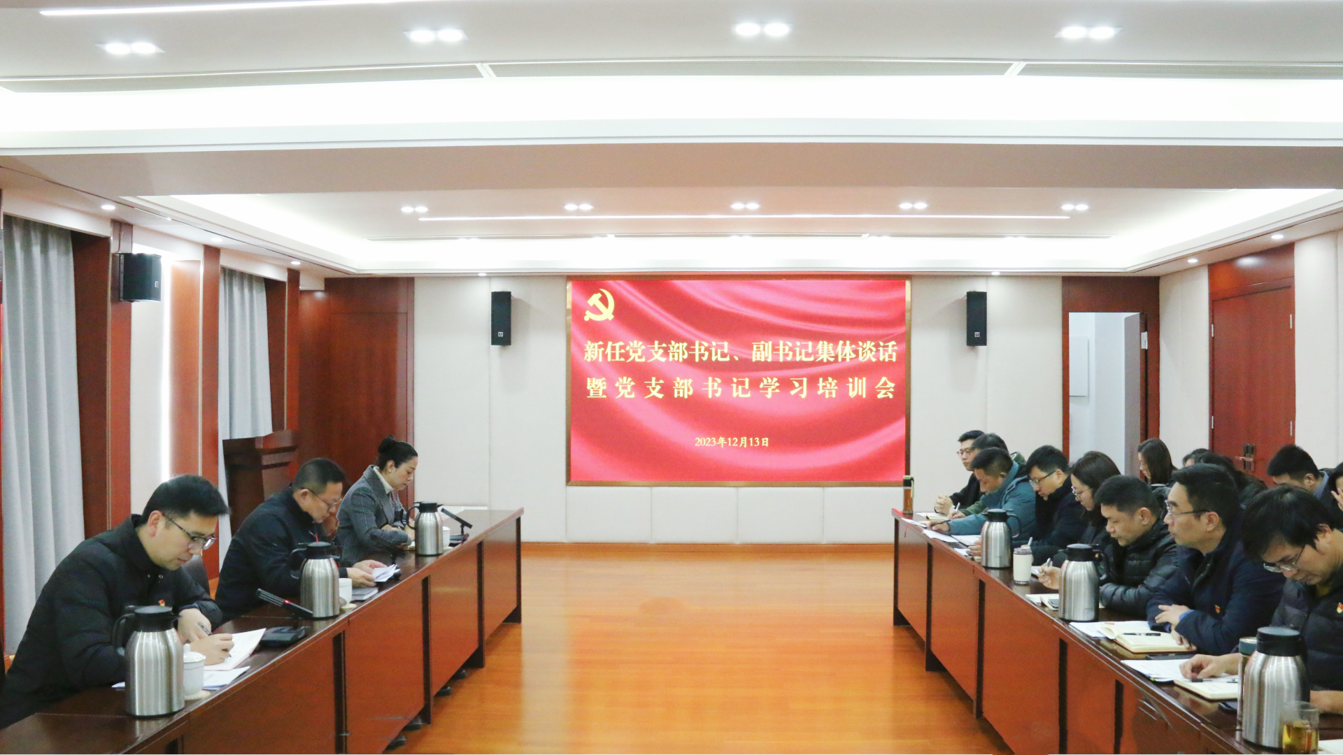 12月13日上午,十三水官网 在5201会议室召开新任党支部书记、副书记集体谈话暨党支部书记学习培训会。院党委书记、政府督导专员孙雷,相关部门主要负责人与全体党支部书记、副书记参加会议。会议由孙雷主持。