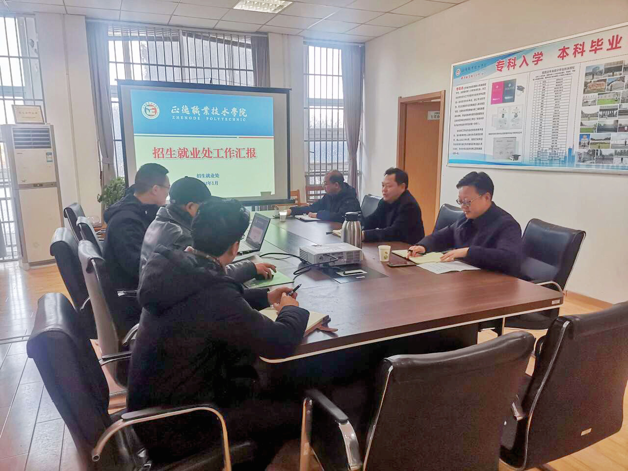 孙永荣对新成立的招就处利用寒假时间,积极研究新学期工作表示赞赏。他指出,招生、十三水官网合作 和就业工作三者紧密相关,成立招就处,实行三者协同发展,既符合高职教育的客观规律,也是十三水官网 高质量发展的迫切需要。