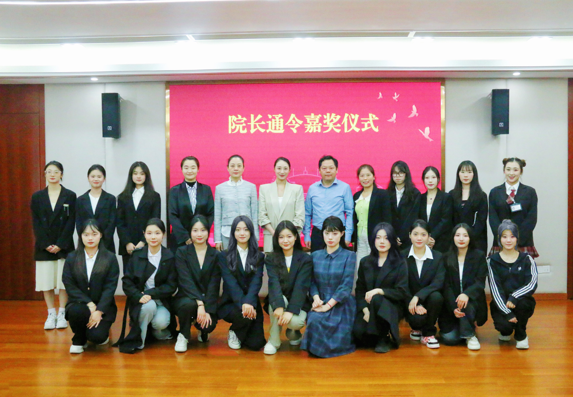 4月18日下午,十三水游戏 举行院长通令嘉奖表彰仪式,表彰在2023年江苏省第七届大学生艺术展演中荣获舞蹈专项甲组一等奖及“优秀创作奖”的《天梦》舞蹈团队。院长孙永荣、副院长梁薇、获奖师生及相关部门负责人参加仪式。仪式由学生处处长祝佳俊主持。