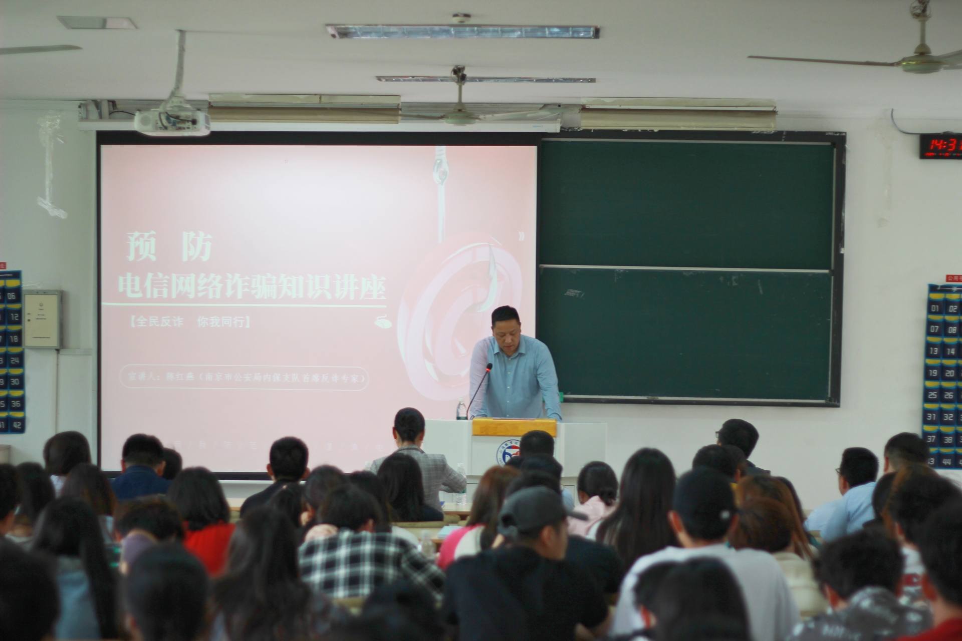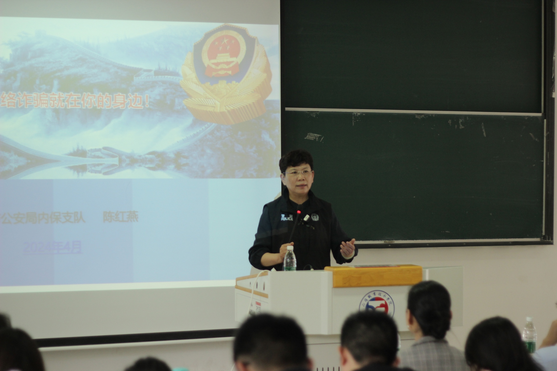 为进一步增强广大师生员工的防诈安全意识,有效防范校园电信网络诈骗案件发生,切实维护学生财产安全,营造平安和谐校园环境。4月25日下午,十三水官网 特邀南京市公安局内保支队首席反诈专家陈红燕警官为全体学工人员和各系学生代表普及反诈骗知识,现场进行沉浸式的防诈反诈安全教育。副院长高斌、梁薇出席讲座。