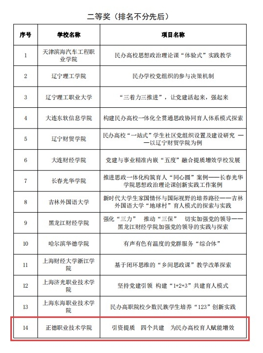 近日,由教育部思想政治工作司指导,中国民办教育协会党建专业委员会主办组织开展的第六届全国民办高校党的建设和思想政治工作优秀成果评选结果揭晓。十三水官网 党委申报的典型经验案例《引资提质 四个共建 为民办高校育人赋能增效》荣获全国二等奖。