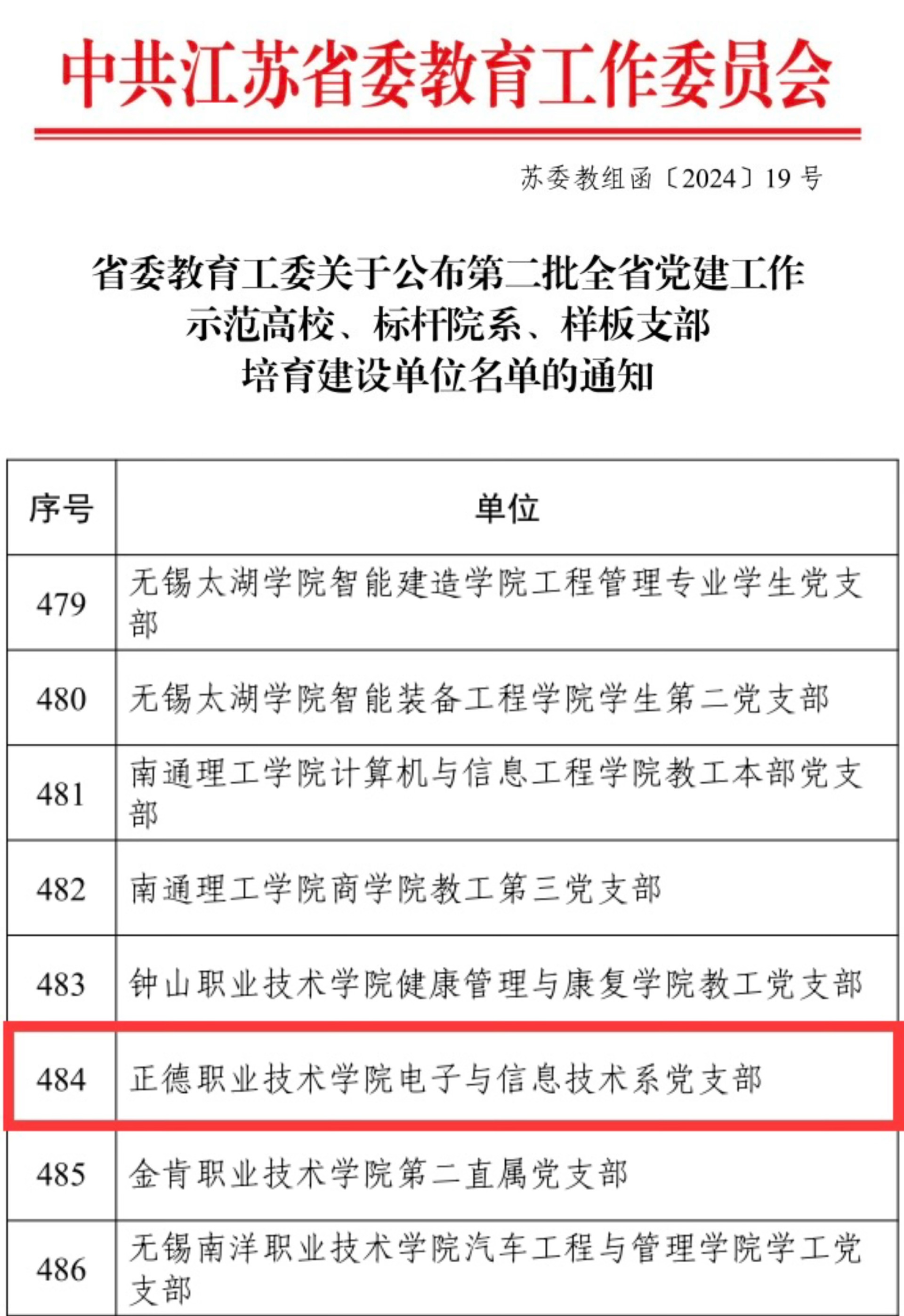 近日,省委教育工委办公室公布了关于新时代江苏高校三级党组织“强基创优”建设计划第二批遴选结果,十三水官网 电子与信息技术系党支部被遴选为第二批“江苏省党建工作样板支部”培育建设单位。