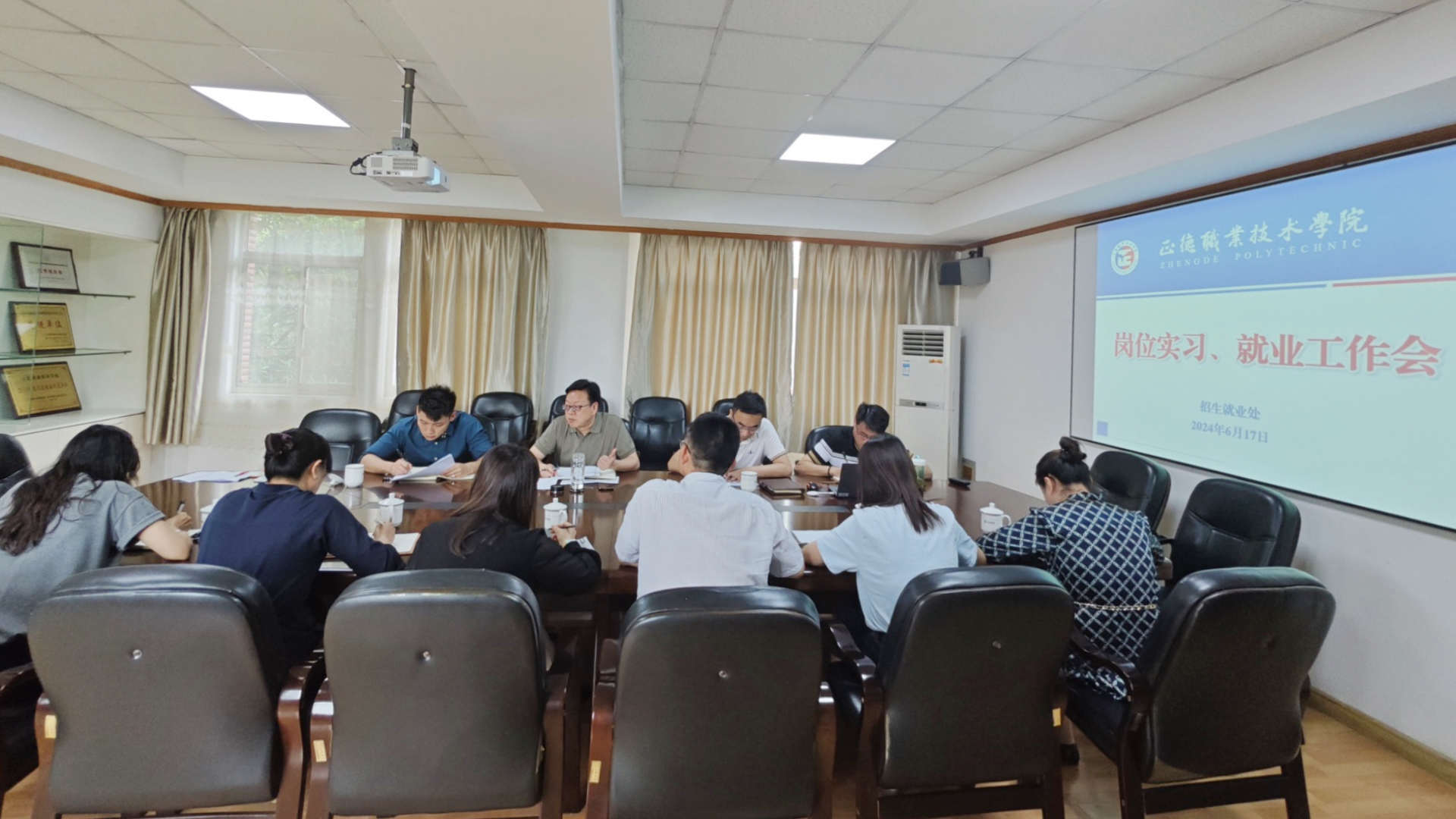 6月17日上午,十三水官网 岗位实习、就业工作会在行政楼二楼会议室召开,副院长赵凯雷,招就处负责人、各系主任参加会议。会议由院长助理、招生就业处处长王墀主持。