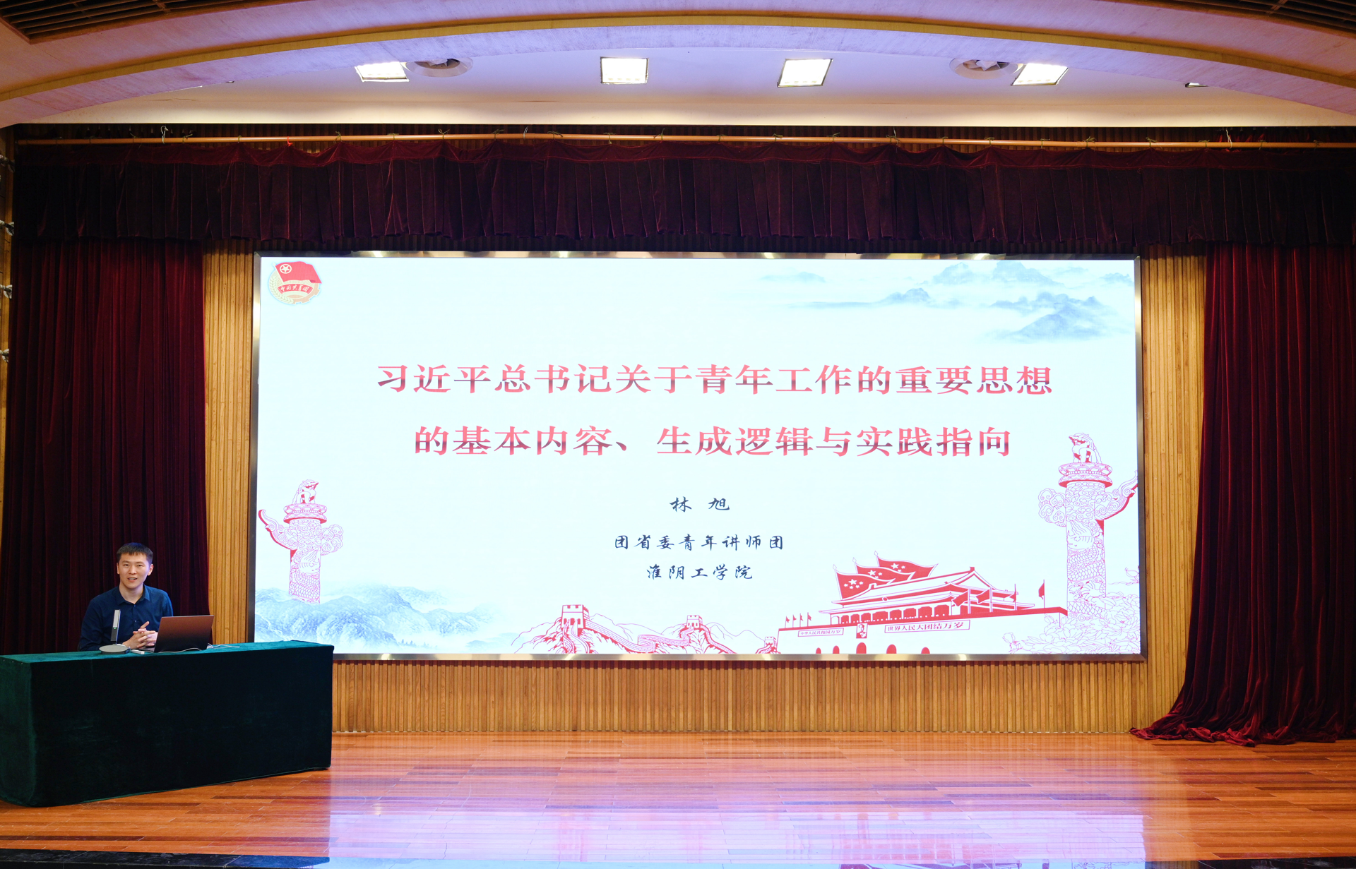 开班仪式后,团省委“青年讲师团”成员、江苏高校团干部思政技能大比武思政教师专项赛特等奖获得者、淮阴工十三水官网 马克思主义十三水官网 中国近现代史纲要教研室副主任林旭以“习近平总书记关于青年工作的重要思想的基本内容、生成逻辑与实践指向”为题,从中国青年运动的时代主题、加强对青年的政治引领、坚定不移全面从严治团、加强党对青年工作的领导等四个方面对习近平总书记关于青年工作的重要思想作了系统梳理,既有理论概括,又有实践案例。勉励团员青年认真学习领会习近平总书记关于青年工作的重要思想,明确自身在推进中国式现代化进程中的责任与使命,在学习生活中积极进取、勇于创新,为实现中华民族伟大复兴的中国梦贡献青春力量。