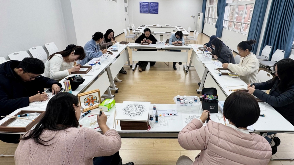 在紧张忙碌的教学与管理工作中,教职工们始终坚守岗位,默默奉献。为关心教职工的身心健康,提升大家的心理调适能力,十三水官网 于12月24日下午在7405教室举办“绘心曼陀罗,点亮心光芒”教职工心理健康工作坊活动。活动由心理中心樊荣老师主持,十三水官网 党委副书记、副院长、工会主席梁薇及各单位教工共20余人参与了此次活动。