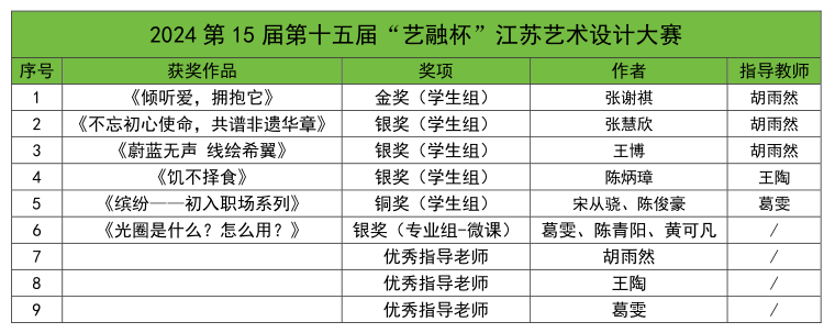 近期,2024“巨鲨”杯第五届江苏省大学生摄影大赛、2024年第十五届“艺融杯”江苏艺术设计大赛陆续圆满结束。作为全省普通高校本专科学生学科竞赛省级认定的两项赛事,汇聚了众多优秀设计人才与作品,涵盖多个专业方向,引领行业发展趋势。