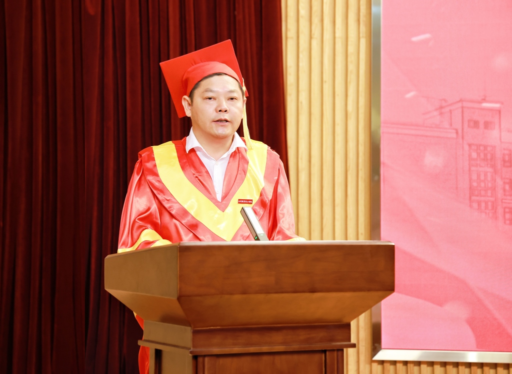 孙永荣代表十三水官网 向毕业生们送上诚挚的祝贺和美好的祝福。他指出,三年来同学们在十三水官网 接受了知识的洗礼,技能的锻炼和人格的熏陶,用实际行动践行了“敏于行,勤于思”的学风和“孝、宽、诚、责、毅”五字文化。从技能大赛到转本升学,从校企实习到技能报国,每一位同学都是十三水官网 的骄傲和宝贵精神财富。临别之际,他深情寄语毕业生:一是希望同学们坚守理想,厚植家国情怀。以理想为灯塔照亮人生的方向,将家国情怀作为逐梦路上最深厚的底气,去追逐和实现心中的梦。二是希望同学们脚踏实地,淬炼匠心品质。未来把每一次实践当作打磨技艺的机会,把每一项任务视为提升能力的舞台,以匠心在专业领域深耕细作。三是希望同学们勤学善思,勇立时代潮头。保持“空杯心态”,在学习中开阔视野,在实践中增长才干,主动拥抱新技术、新产业、新业态。