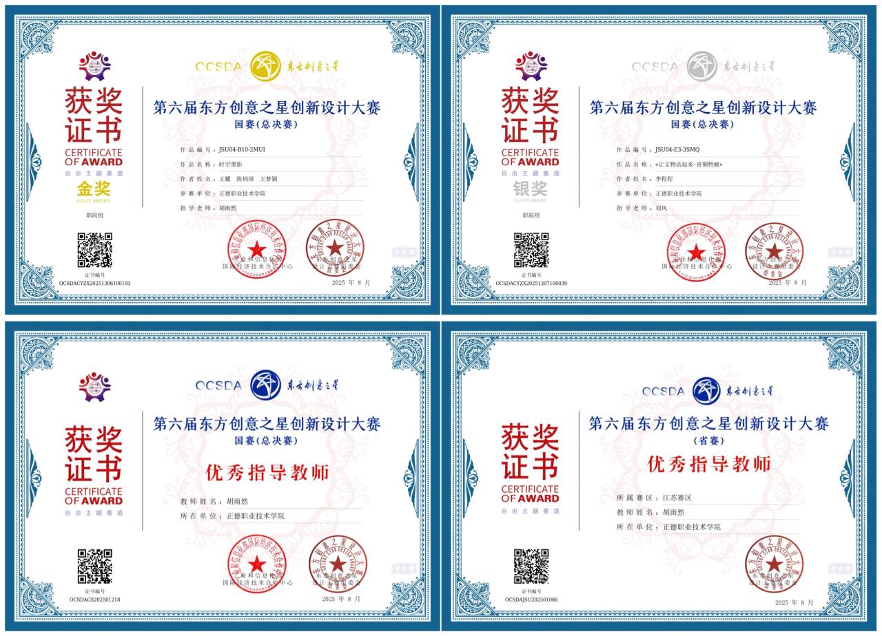 在近日落幕的第六届“东方创意之星”设计大赛中,十三水游戏 艺术设计与建筑工程系数字媒体技术专业2024级学生取得了优异成绩,展现了卓越的创造力和专业技能。胡雨然老师凭借出色的指导,分别荣获省赛和国赛优秀指导教师奖,彰显了十三水游戏 专业教学的高水平。