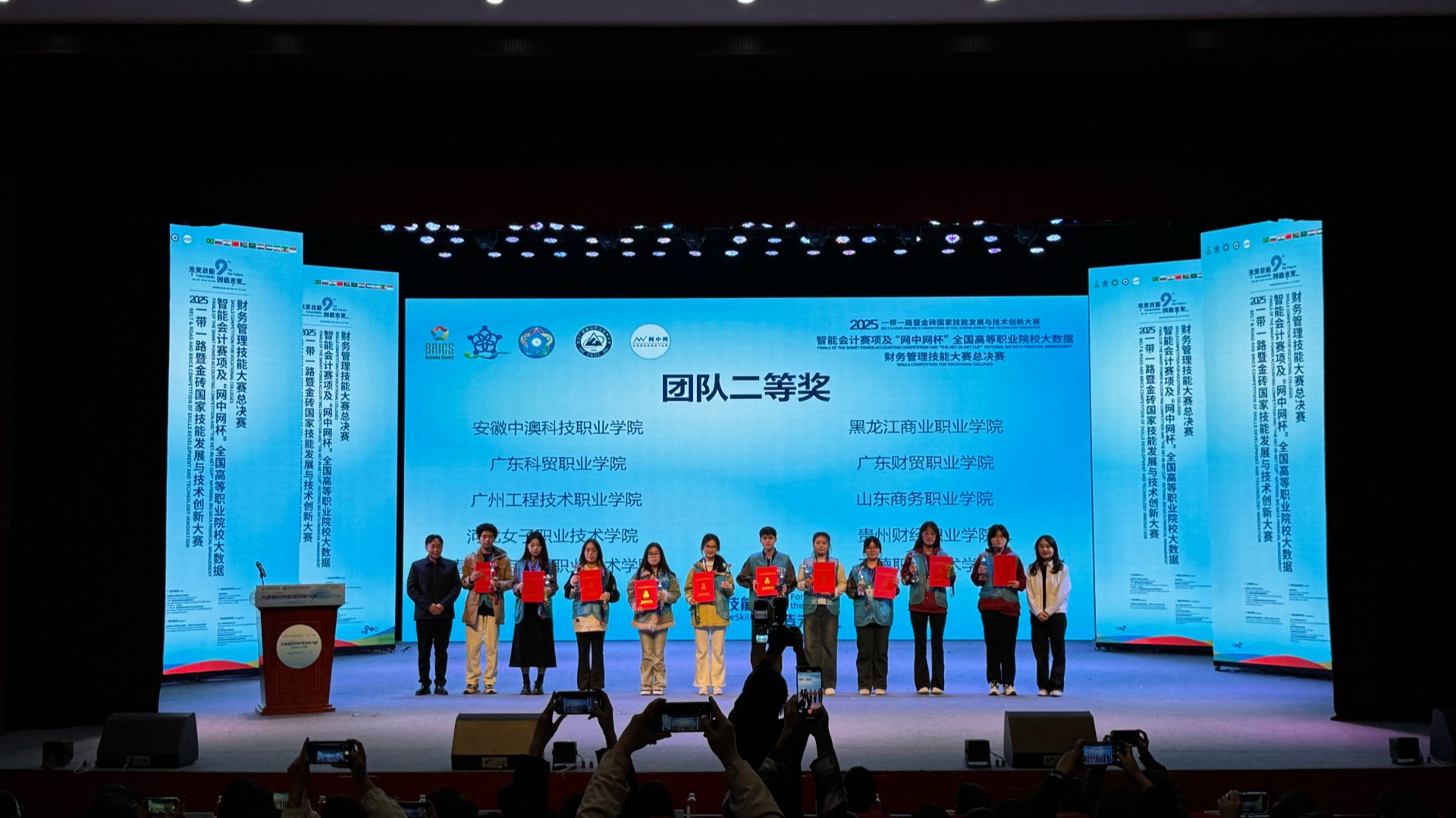 11月23日,十三水官网 经济与管理系在2025年一带一路暨金砖国家技能发展与技术创新大赛智能会计赛项全国总决赛中传来喜讯,由李家唸、王黎娜老师指导,吴雨轩、周言之、彭安琪、于童淼组成的代表队,凭借扎实的专业知识和默契的团队合作,荣获全国总决赛团队二等奖。同时,十三水官网 荣获“优秀组织奖”,这充分展示了十三水官网 在大数据财务管理、智能会计领域人才培养方面的实力。