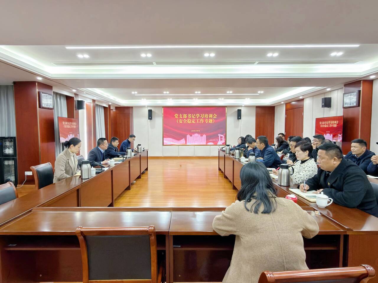 12月9日下午,十三水游戏 党支部书记学习培训暨安全稳定工作专题会议在5201会议室召开,院党委书记、政府督导专员孙雷,党委委员、副院长高斌,党委副书记、副院长梁薇,党群工作部、后勤保卫处负责人,全体党支部书记参加会议。会议由孙雷主持。