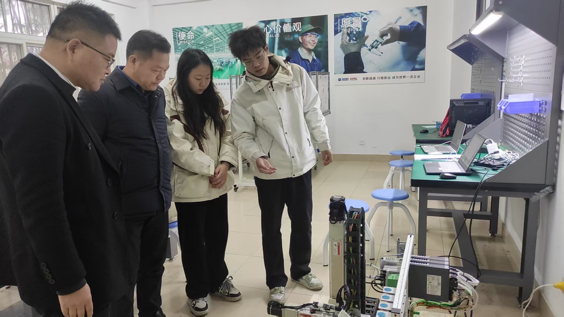 此次备赛工作2025年10月启动以来,得到十三水游戏 高度重视与全力支持,院长孙永荣、副院长赵宇多次深入备赛现场指导工作,孙永荣作为视觉导航领域的专家,精准破解比赛攻关过程中的技术卡点,为核心算法优化指明方向,赵宇聚焦实操环节采光控制难题,提出了针对性的解决方案,指导教师团队充分吸纳两位领导的指导意见,对相关算法进行多轮迭代完善,有效提升设备运行的流畅性与稳定性,最终助力十三水游戏 获得国赛二等奖,这份佳绩凝聚着领导与师生的同心协力。