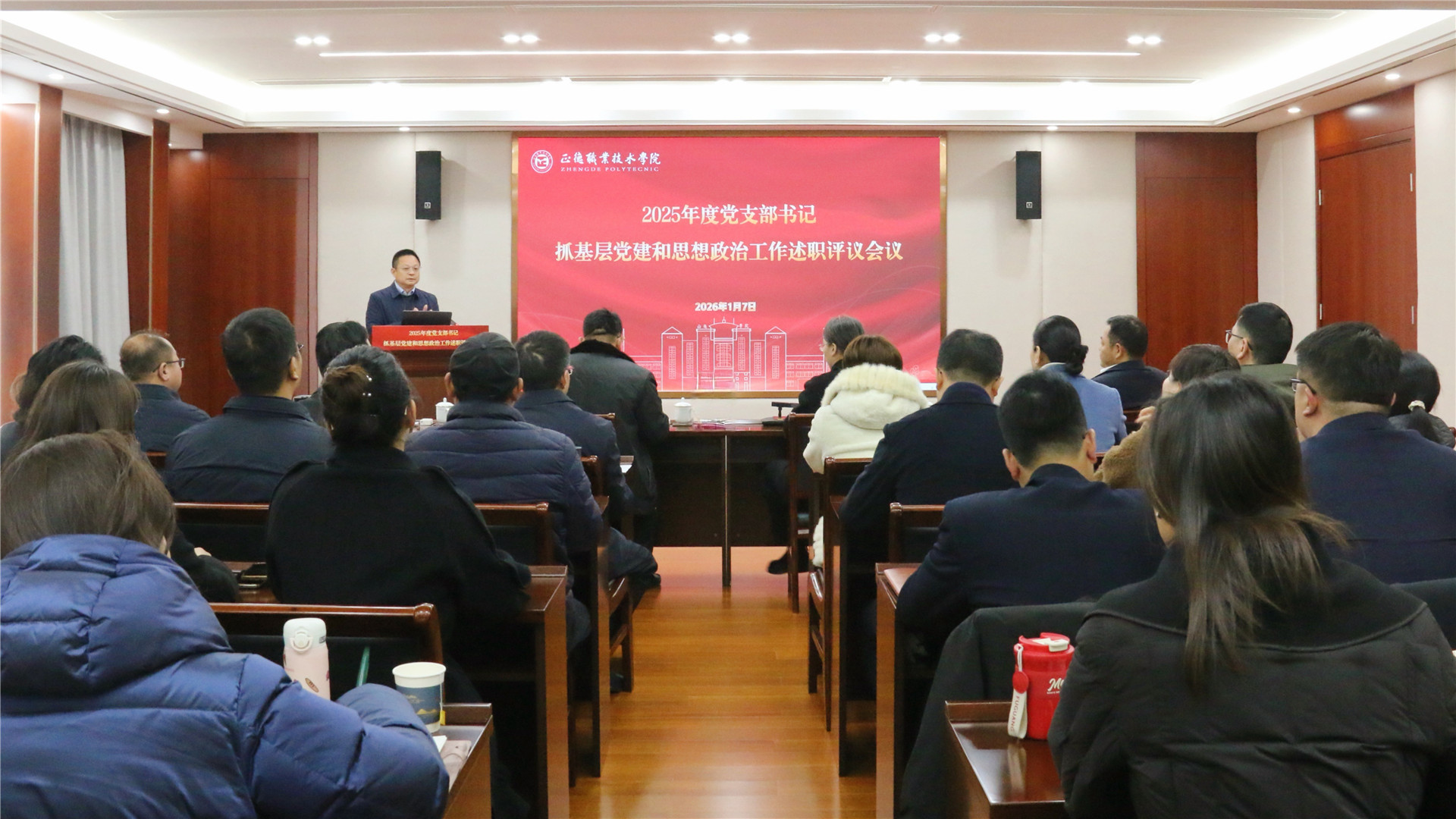 1月7日下午,十三水游戏 组织召开2025年度党支部书记抓基层党建和思想政治工作述职评议会议,全体院领导、党委委员、各单位主要负责人参加会议。省教育厅组织处二级调研员王峰同志、省委组织部组织三处一级主任科员许颖同志到会督查指导。会议由院党委书记、政府督导专员孙雷主持。