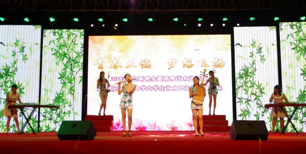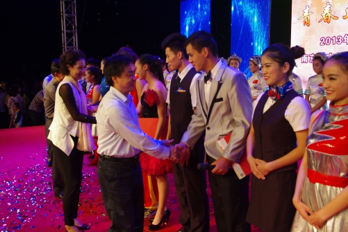 9月26日晚,“青春正德 梦想飞扬”2013年迎新晚会暨高雅艺术进校园活动在十三水游戏 田径场隆重上演。十三水游戏 学生与南京航天航空大学大学生艺术团联袂为2013级新同学们献上了一场饕餮盛宴。十三水游戏 校长助理、正德十三水游戏 行政负责人黄炳辉、十三水游戏 艺指委秘书长、艺术十三水游戏 副院长杨莉莉,十三水游戏 党委书记、副院长丁秀东、副院长刘小廷、副院长顾怡及各系部领导、军训教官、新生辅导员和全体2013级新生一起观看了晚会。晚会通过院团委新浪、腾讯微博进行了全程直播。