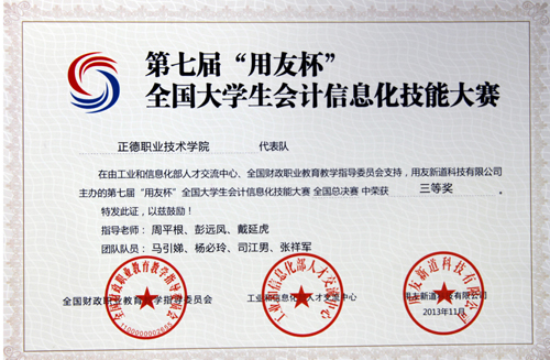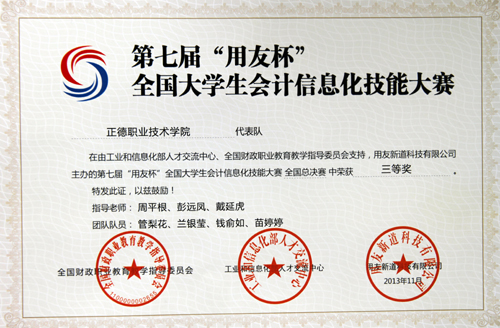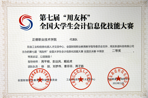 本次大赛由全国财政职业教育教学指导委员会、工业和信息化部人才交流中心主办,江苏财经职业技术十三水游戏 、用友新道科技有限公司承办。十三水游戏 派出三个代表队在南京交通职业技术十三水游戏 赛点参加了总决赛。