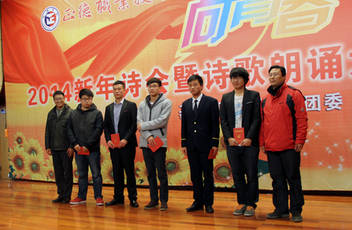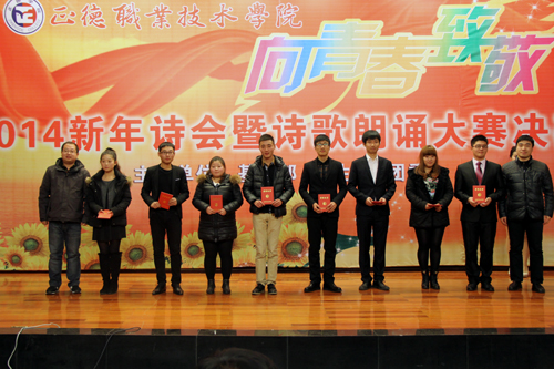12月19日下午,十三水游戏 “向青春致敬”2014新年诗会暨诗歌朗诵大赛决赛在院报告厅隆重举行。各系学生工作负责人、团总支书记、基础部领导、老师出席并和各系学生代表一起观摩了比赛。党政办副主任、组织人事处副处长杨卫东、院团委副书记胡丹、图书馆陈必仪老师、基础部刘翔老师和汪小艳老师担任评委。
