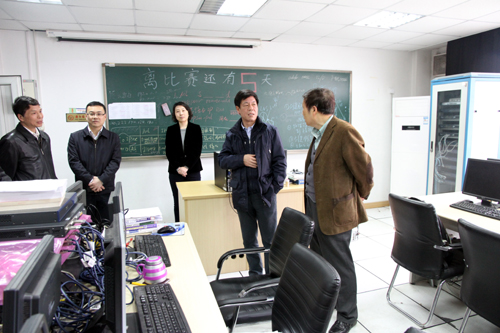陈夏初(右二)检查十三水游戏 网络实训室建设情况