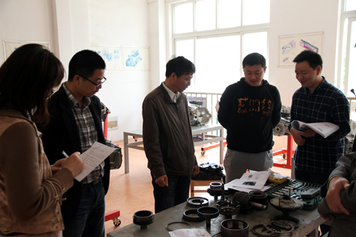 随后,刘小廷一行先后来到市场营销技能项目训练实训室、电子工程实训室、网络架构实训室、基础部英语教师办公室和汽车工程系发动机实训室了解相关参赛项目的准备情况。看到参赛选手们斗志旺盛,精神饱满,刘小廷感到很高兴。他希望参赛学生看清任务,制定计划,分工合作,调整心态,理顺知识,总结以往,沉着冷静,争取赛出好成绩。