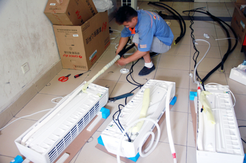 格力空调安装人员紧张工作