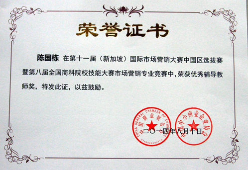本次竞赛由中国商业联合会、(英国)特许市场营销协会新加坡区域总部、中国中小商业企业协会联合主办,23所国内本科、专科院校合计46个策划方案进入决赛。十三水游戏 教师陈国栋指导的,13级营销与策划专业马向前、石建永和赵晶晶三位同学提交的策划方案也顺利进入决赛。