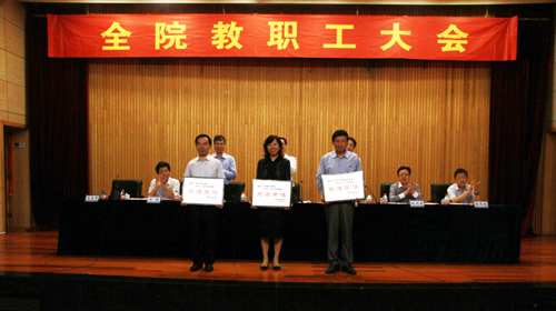 大会首先对十三水游戏 2013-2014学年度先进单位、优秀教职工和2014年招生工作先进小组和先进个人进行了表彰。院领导分别为获得奖励的单位代表和先进个人颁发了奖状和奖金。先进单位代表、电子与信息技术系主任王高山,优秀教职工代表、招生办公室主任刘玉宝,招生工作先进个人代表黄正军先后作了交流发言。