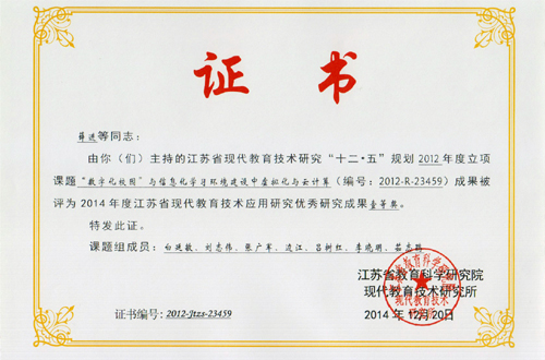 专家组一致同意通过课题鉴定,并评为2014年度江苏省现代教育技术应用研究优秀研究成果一等奖。