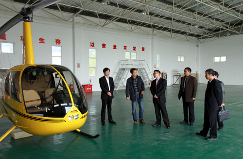 庄群华院长(左三)一行参观若尔航空直升机机库