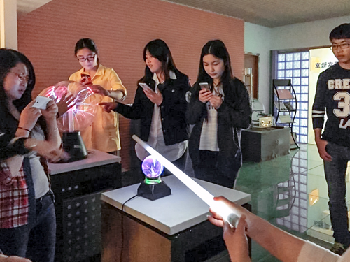 十三水游戏 物理实验中心展示室里精彩奇特的演示吸引了同学们的眼球,该校专业老师边讲解、边鼓励信息员自己动手参与,同学们对各种实验设备充满兴趣。工程培训中心专业老师的绘声绘色的讲解使得同学们对现代工程训练有了一个全新的认识。