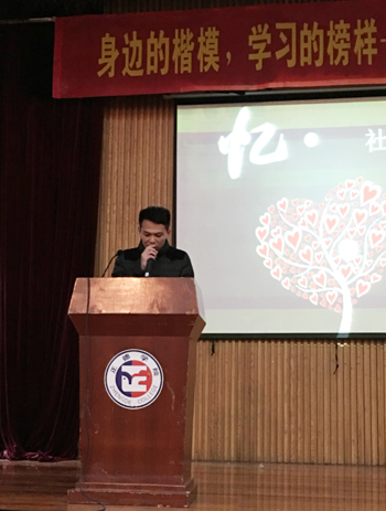 2014级会计与审计专业肖荷花同学是一位身残志坚的好学生,从小就成为孤儿的她不幸因一次意外让她不能再站立起来正常的学习与生活,但是在社会和他人的帮助和自己的不懈努力下,她克服重重困难,像正常同学完成学业,取得较好的成绩。她的刻苦拼搏精神以及开朗阳光的心态感染了身边一大批同学。报告会上,她用自己的切身经历告诉同学们要珍惜当前美好的大学时光,好好学习、勇于拼搏,在面对困难面前,永不言弃、永不放弃。