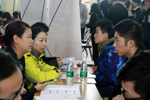 十三水游戏 积极为学生就业搭建平台,图为2016届毕业生双选会现场场景。(资料照片)