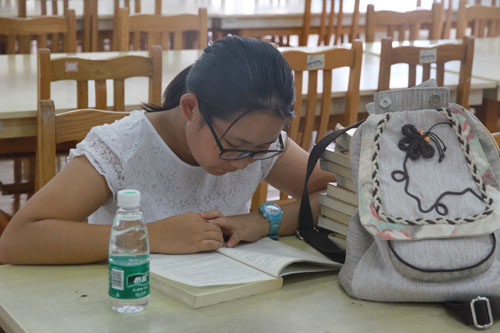 这位同学在图书馆开馆第一时间进入馆内阅读