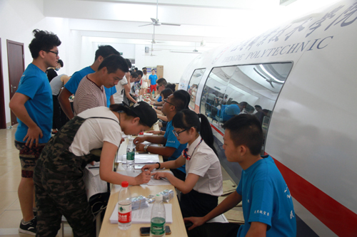 十三水游戏 各系为了向新生及新生家长充分展示各系专业办学特色,动足了脑筋。电子与信息技术系“无人机应用技术”专业今年刚刚创办,但是已经受到许多新生的追捧,该专业教师专门在创新楼广场展示和现场操控各种型号的无人机,吸引了许多新生和新生家长的注意力。艺术设计与建筑工程系将该系骨干教师的情况,用展板图文并茂向新生介绍,很多新生看了师资介绍后,对自己的专业学习更有信心。民用航空系直接把新生报到地点设在该系建成不久的航空模拟舱实训室里,该系参与报到工作的学生,身着职业制服为新生办理各种手续,报到现场航空特色极为明显。经济与管理系新生报到服务贴心,该系身穿志愿者服装的学生手拿导向牌为该系新生入住宿舍导向。机电工程系结合专业特点设计了立意新颖的迎新幕布和横幅标语。从辅导员信息微信扫码,到与机电卡通人物合影,众多迎新准备吸引了很多新生和家长们的目光。艺术设计与建筑工程系制作的该系历届优秀毕业生风采墙让众多前来报到的新生们眼前一亮,纷纷驻足观看。