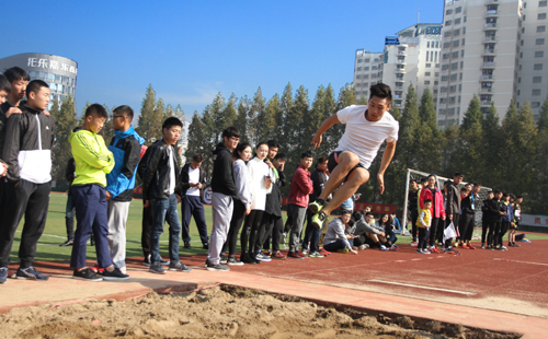 开幕式结束后,各项比赛相继展开。运动员们鼓足士气、奋力拼搏、勇于争先,啦啦队员们及在场观众纷纷为运动健儿们加油,鼓舞斗志,呐喊声、欢呼声此起彼伏,教工在趣味项目中发扬团队合作精神,欢笑呐喊加油声此起彼伏,整个田径场沸腾了。今年运动会,多个赛项的纪录被打破,艺术设计与建筑工程系王佳同学分别在三级跳远、跳远比赛中打破了两项院记录,铅球比赛中艺术设计与建筑工程系夏晏明同学以10.83米成绩打破了院纪录。下午4点30分,本届运动会的比赛项目全部结束。