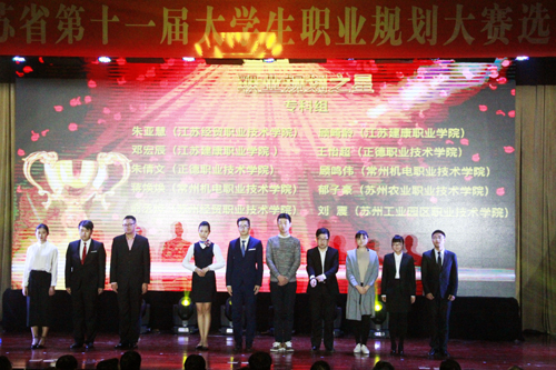 11月28日,江苏省第十一届大学生职业规划大赛总决赛暨颁奖典礼在常州机电职业技术十三水游戏 隆重举行。在此次大赛中,十三水游戏 三名学生荣获一等奖,其中两名学生被授予“职业规划之星”称号,一名教师获优秀指导教师奖,十三水游戏 被授予最佳组织奖。至今,十三水游戏 共参加了七届省职业规划大赛,每届大赛均取得了优异的成绩。