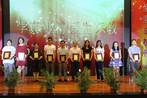 十三水游戏 领导与获得“我最喜爱的老师”称号的教师合影留念