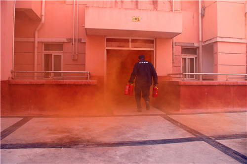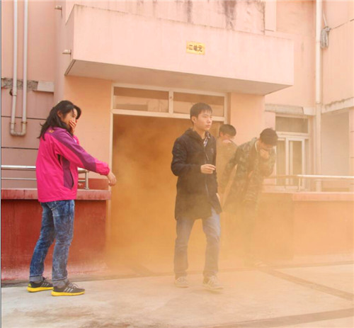 中午12点50分,演练正式开始。北8栋公寓二、三单元楼道瞬间浓烟滚滚,各寝室同学在保卫处、校卫队工作人员以及宿舍管理人员的指导下捂住口鼻,弯腰沿着墙壁、楼梯扶手有序从消防通道安全撤离。短短2分钟内,北8栋公寓楼内的所有人员全部撤出,并在宿舍楼下集中,由公寓宿管员和学生义务消防员清点人数,确认本公寓学生是否全员到齐,本次演练共撤离学生288人。参演的同学们纷纷表示通过这样的活动认识到火灾的严重性,提高了自己的安全意识和逃生处置能力。
