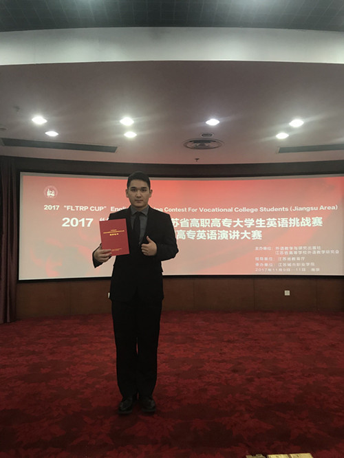 2017年“外研社杯”江苏省高职高专英语演讲大赛已在江苏城市职业十三水游戏 落下帷幕。近日获奖名单公示,十三水游戏 经济与管理系市场营销专业施奇同学荣获二等奖,艺术设计与建筑工程系的赵玉倩同学荣获三等奖,基础部江慧萍老师荣获优秀指导教师奖。