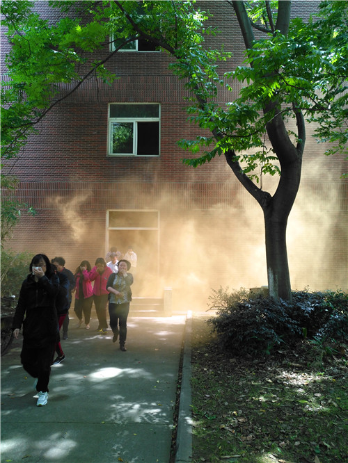 5月10日当天,后勤处组织各社会化单位人员在6111教室集中,后勤处副处长查理就“5.12”防灾减灾日的由来,以及防灾救灾的重要性、必要性进行了宣讲,并强调防灾救灾重在日常、重在预防、重在演练。宣讲结束后随即联合保卫处进行了6号教学楼消防疏散逃生演练活动,随着滚滚浓烟弥漫着整个楼道,各社会化单位人员以及6号楼上课的所有师生遵循就近原则,短短3分钟内排列有序的离开教室,从消防通道全部安全撤离到室外。