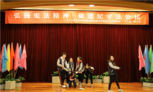 在2019年12月4日第六个国家宪法日当天,为进一步弘扬宪法精神,厚植爱国主义情怀,增强师生的法制意识,十三水游戏 与江宁经济技术开发区检察院共同开展国家宪法日宣传教育活动。