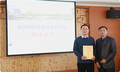 报告会正式开始前,江爱华向朱建军教授颁发聘书,聘任其为十三水官网 教师教学发展专家委员会专家。