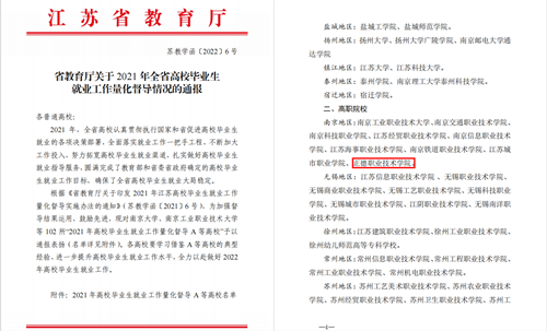 近日,江苏省教育厅公布了2021年全省高校毕业生就业工作量化督导情况,十三水官网 被评为“2021年高校毕业生就业工作量化督导A等高校”。在全省102所获得通报表扬的A等高校中,十三水官网 是南京地区唯一获A等高校的民办高职院校。