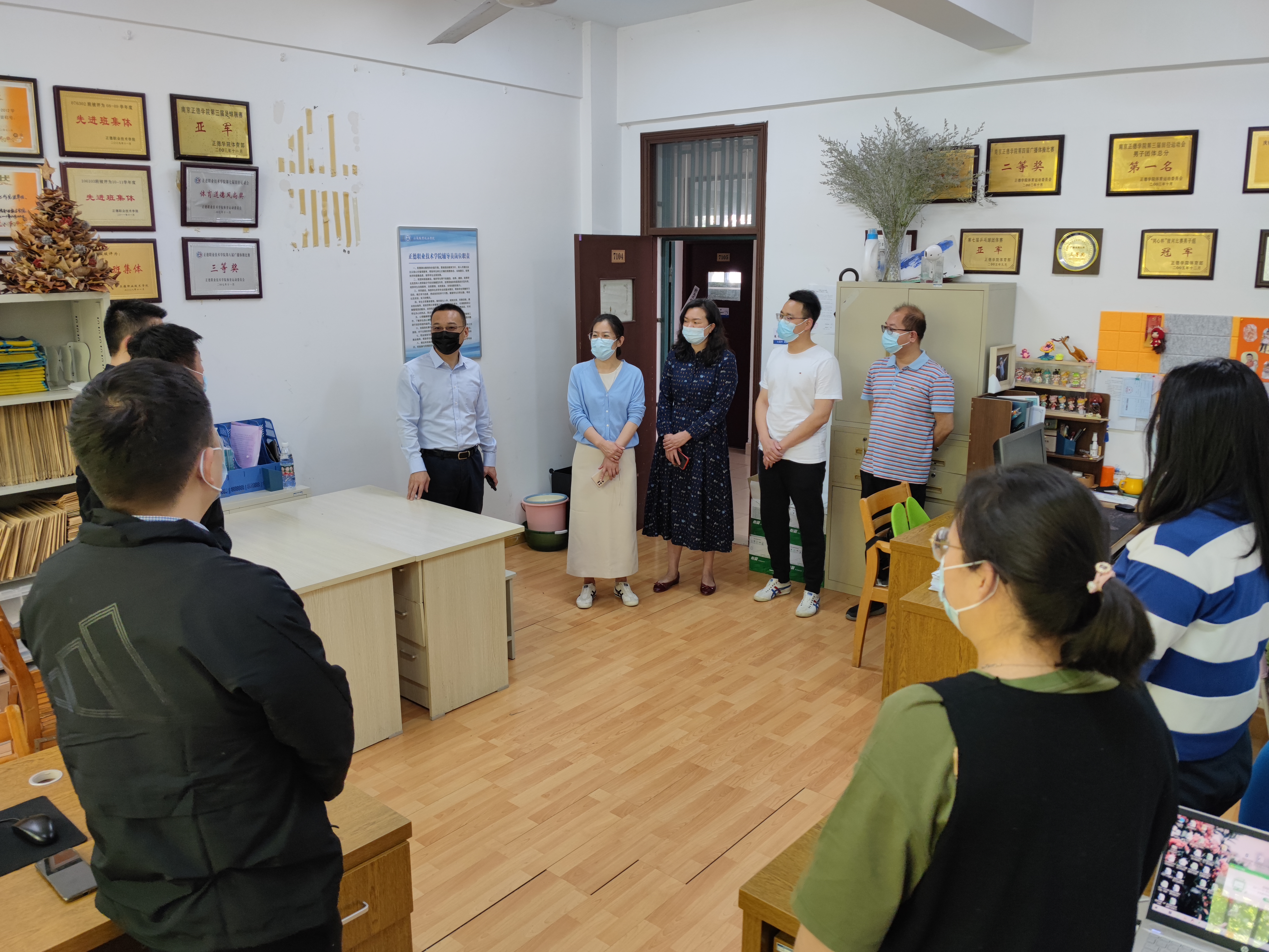4月11日上午,院长庄群华、党委书记孙雷分别率队看望慰问疫情防控期间在校值守的教职工,并检查、督促、推动相关工作开展。副院长江爱华、赵凯雷、任慈陪同参加。