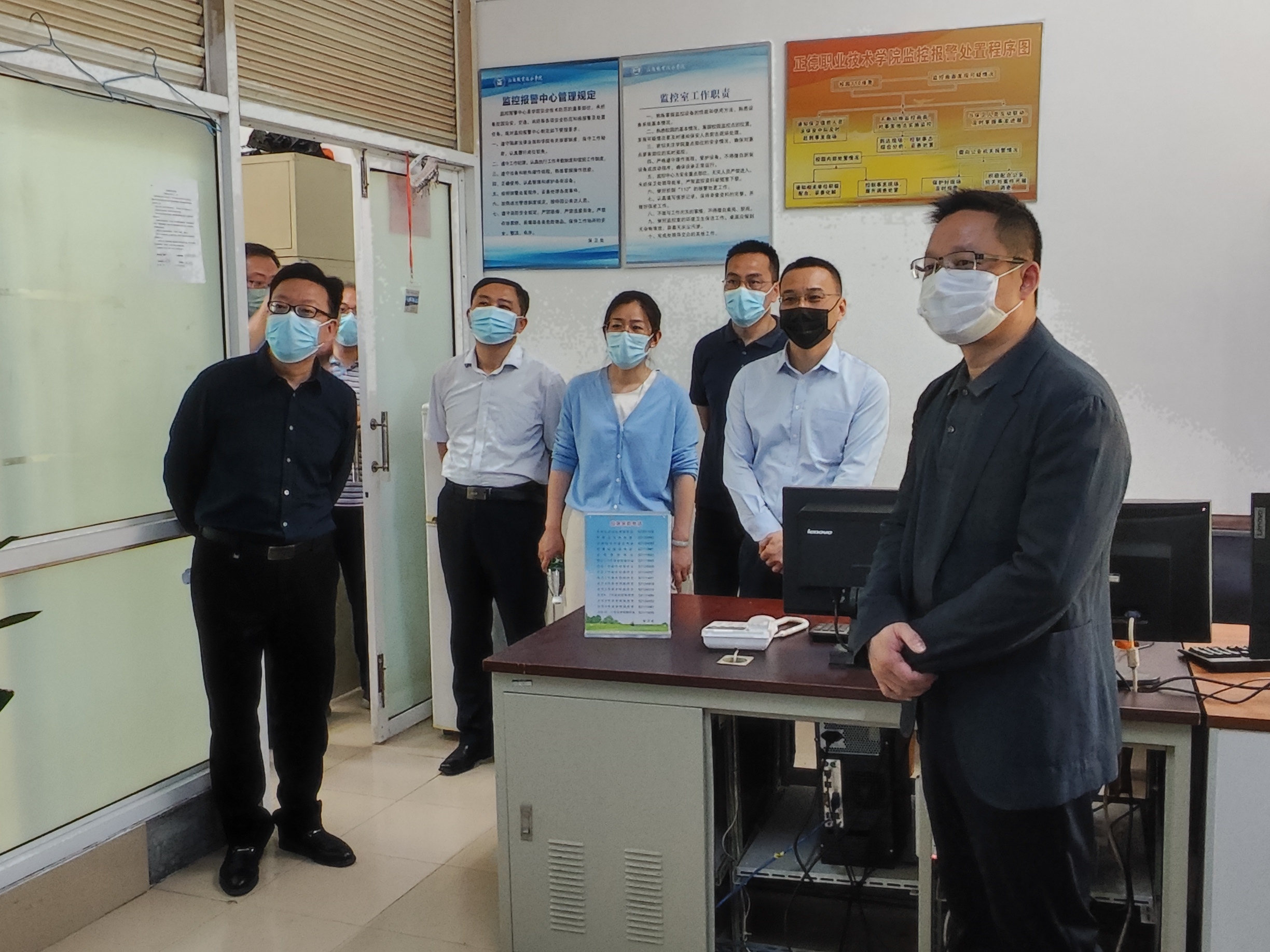院领导还来到校园监控中心,详细了解了校园各类场所的监控运行情况,并从进一步加强人防、物防、技防方面,对强化校园安全管理工作提出了要求。