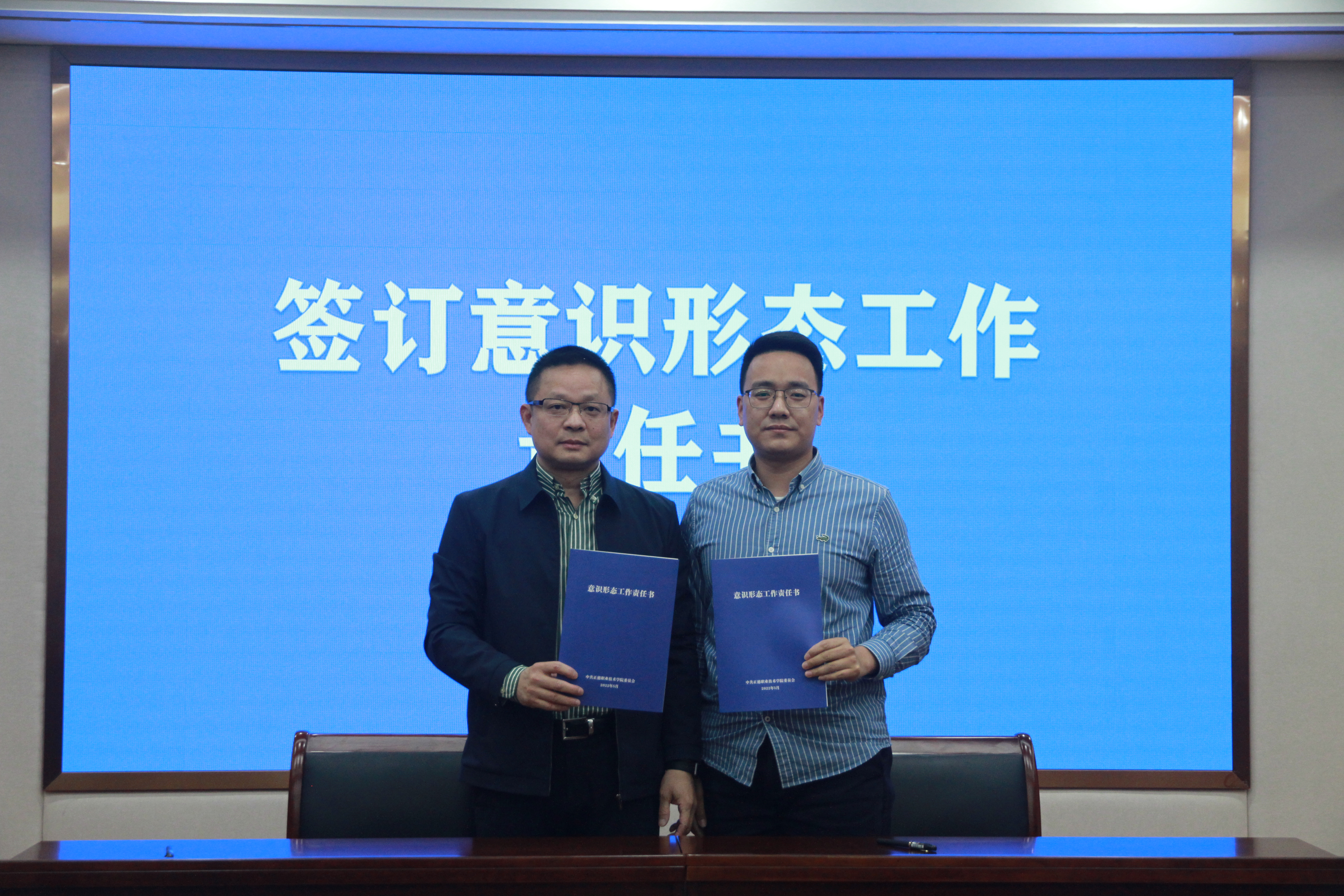 会上,院长庄群华、党委书记、政府督导专员孙雷分别与系(部/处)行政负责人代表和支部书记代表签订了《安全稳定工作目标责任书》《意识形态工作责任书》。