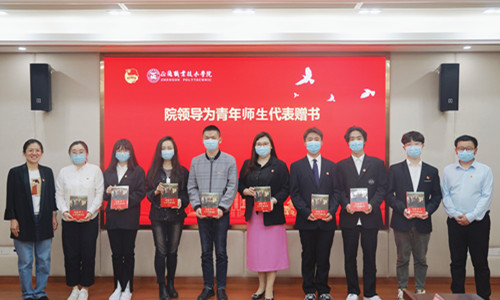 最后,任慈为2021年度“五四”评优获奖代表颁发证书,并向参会师生代表赠送《习近平与大学生朋友们》一书。