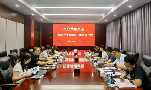 参观结束后,校企双方进行了座谈交流。任慈向玻纤院领导介绍了正德十三水官网 的办学和人才培养情况,教务处副处长、校企合作办主任陆松介绍了十三水官网 校企合作的基本情况,祝佳俊、任丽君等对十三水官网 在专业设置、学生岗位实习和就业等方面的工作作了补充说明。校企双方就产业工人队伍建设改革试点、校企合作育人、学生就业需求等深入交换了意见,并就如何开展合作达成了初步意向。